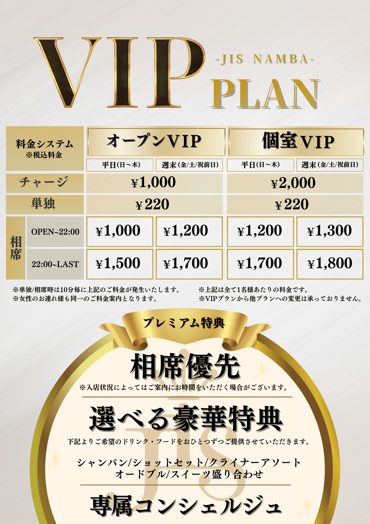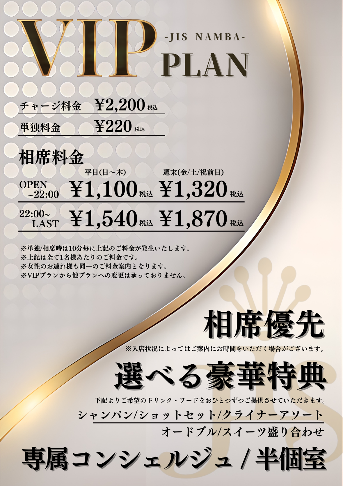 通常プランにはない相席優先案内や専属スタッフなど最上級のサービスを含めたプランです。【料金】